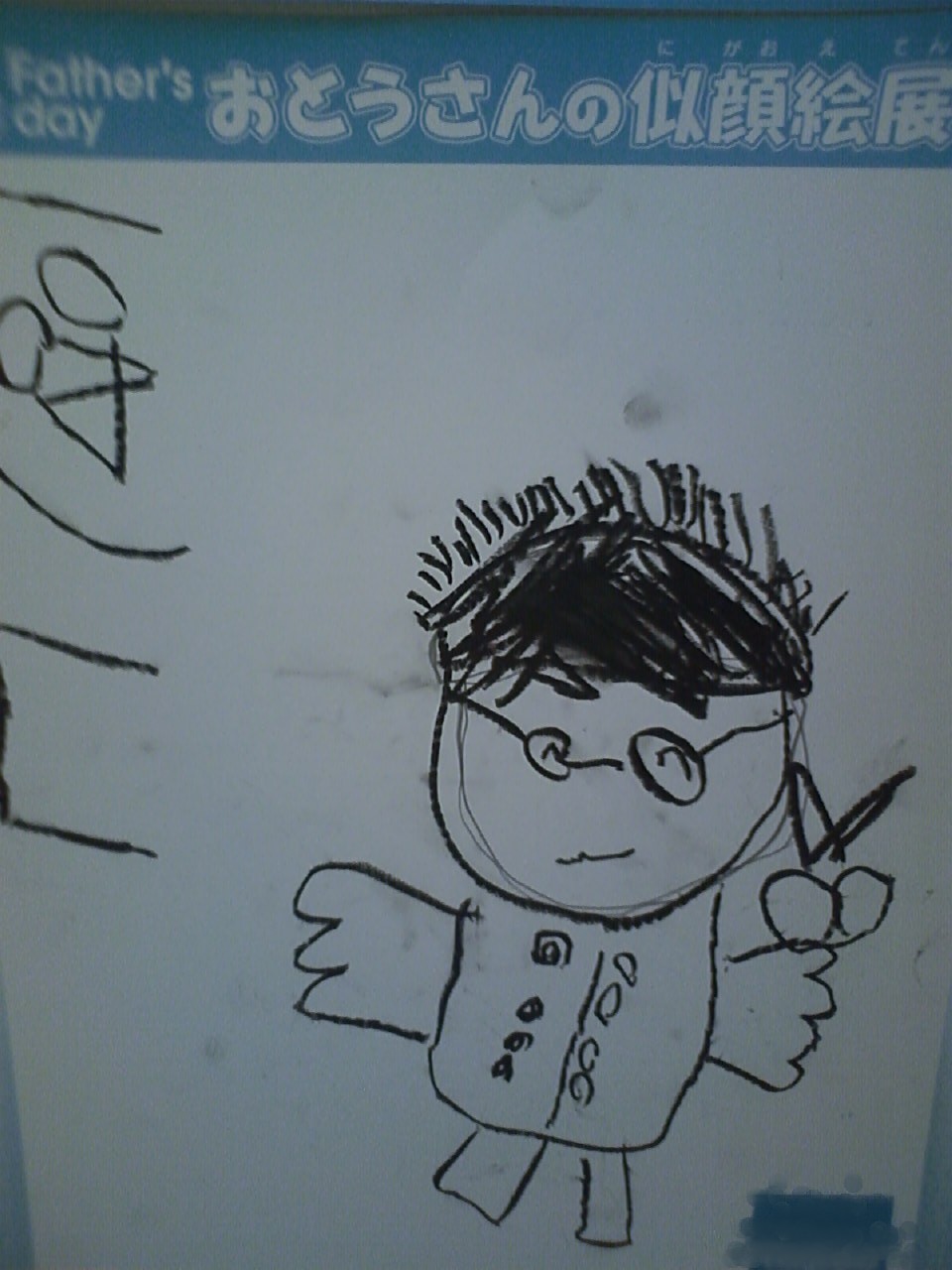 先日、幼稚園で描いた父の絵が近所のショッピングモールに掲示 旦那が今日休みだったので子供たちを連れて見に行ってきたよう 子供たち2人を歯医者に連れて行ってもらい、その後モールに行